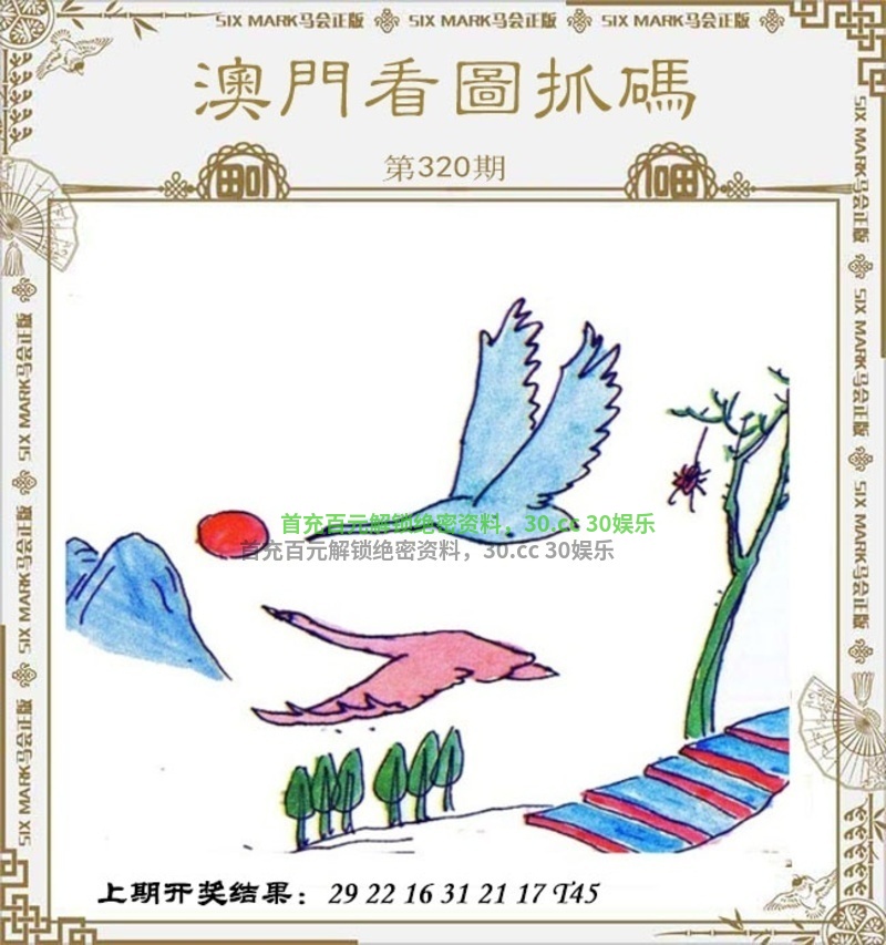 | 319期:开奖结果:29-22-16-31-21-17特:鸡45准 | |||||||||||